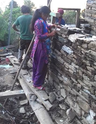 Then came 2015, when the earthquakes ravaged the community and the house built with so much effort collapsed on the ground. To pay back the loan, she started to work as a labourer. She had to rebuild her house too. Male members were hard to be found in the village for male youths had all left for foreign employment. She decided to take up the construction work but community people began to say 'mason must be men.' But Suntali would not give up. She decided that she would learn masonry and become a skilled mason herself.